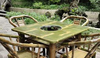 竹家具竹椅竹火锅桌子无烟电磁炉煤气灶一体方圆桌子圈椅靠背椅子
